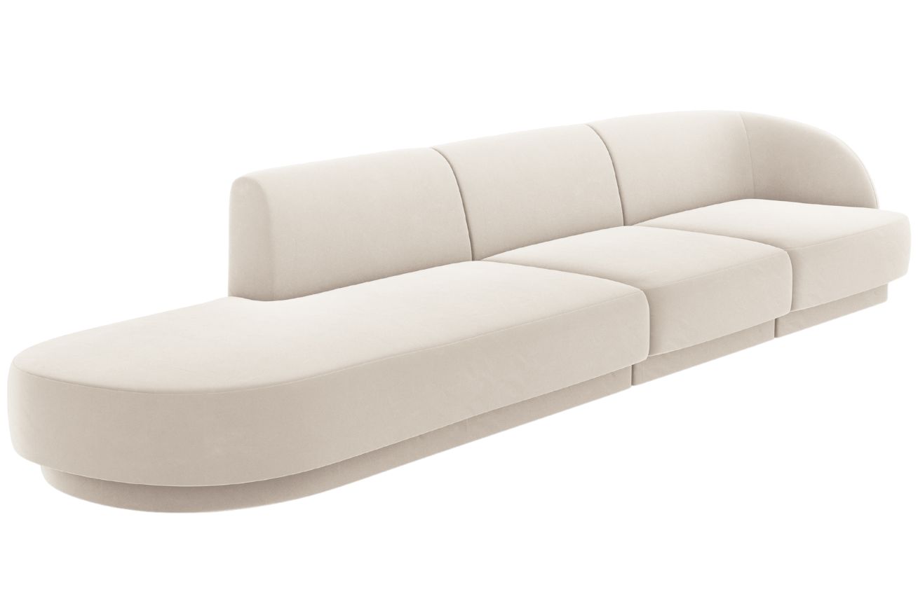 Popis produktu Béžová sametová čtyřmístná pohovka MICADONI Miley 323 cm, levá